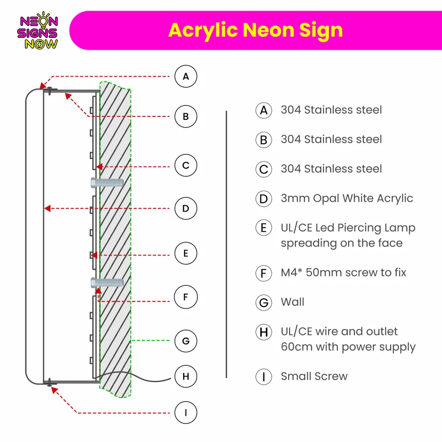 Made from high-quality acrylic, our LED neon sign offers a stunning alternative to traditional neon lights. The use of LEDs ensures energy efficiency and a longer lifespan, so you can enjoy its radiant charm for years to come without worrying about frequent replacements.