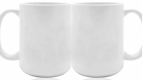 444 mL Photo Sublimation White Ceramic Mug. Smooth Molded Ceramic Composite. Glossy White Exterior. Easy Comfort Grip Curved Handle. Recommended Hand Wash Only