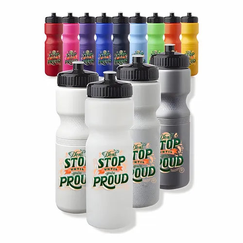 This 828 mLHydro Mate Easy Push Cap Water Bottles is made of durable, high-density coloured polyethylene material and has a good grip action bottle with a ridged cap. The easy-flow coloured drinking push cap makes it easy to take a sip, even when you're on the go. The caps do not come assembled on the bottles, so you can customise them with your own logo or design. Order yours today and stay hydrated in style with this amazing drinkware!!