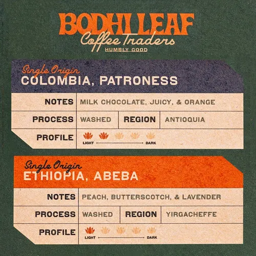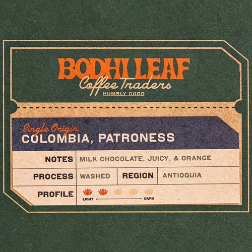 Direct Trade Specialty Coffee - Two Bags Gift, Free Tumbler Colombia Patroness Country: Colombia Region: Antioquia Process: Washed Cupping: Juicy, Milk Chocolate, Orange Roast Profile: Light - Medium Description: A juicy coffee with incredible depth. The taste of milk chocolate, balanced with citrus acidity makes Colombia Patroness a fantastic cup of coffee.