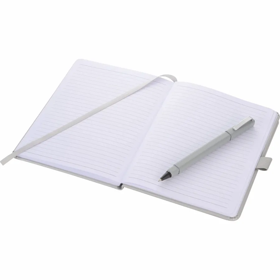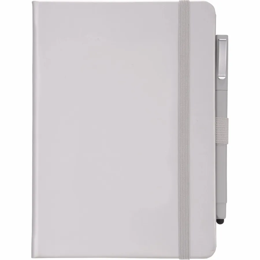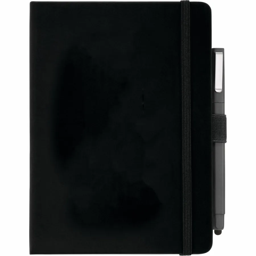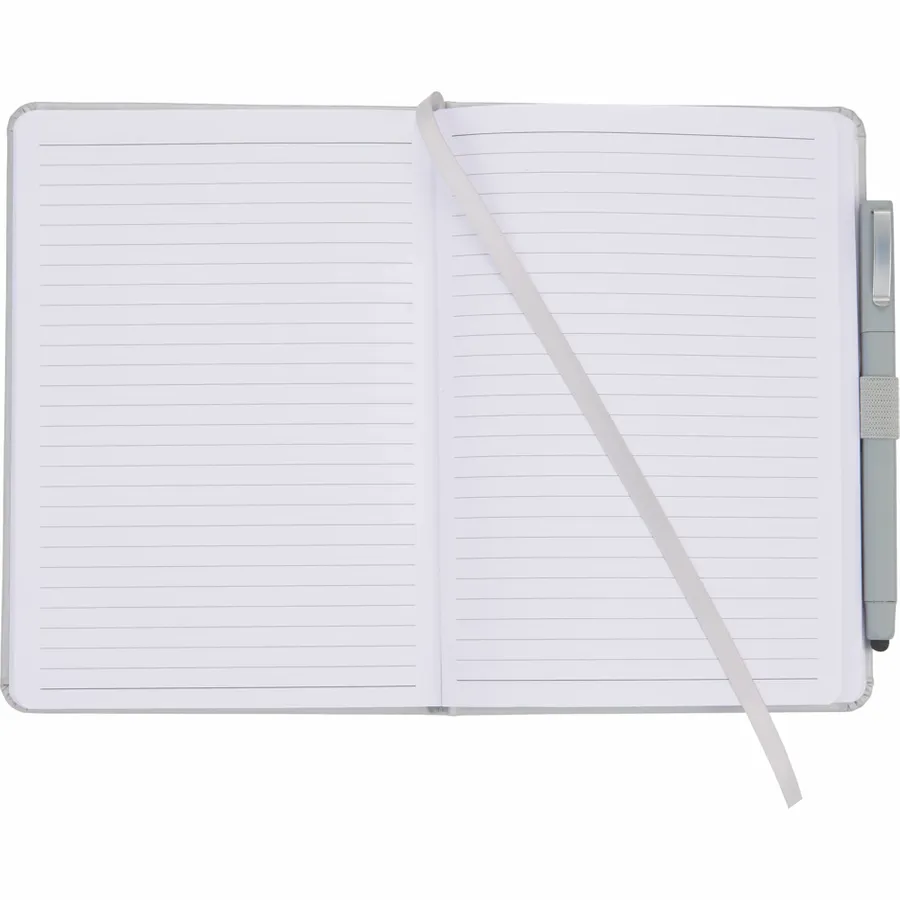 The FSC Mix Vienna Hard Bound Journal Bundle Set includes one 5 x 7 Vienna Hard Bound Journal (2800-29) and one Ambassador Square Ballpoint Stylus (6620-33). The included hardcover bound journal features a built-in elastic closure, a color-coordinated pen loop, and a ribbon page marker. It includes 72 sheets of white lined FSC Mix paper for taking notes, making lists, and more.