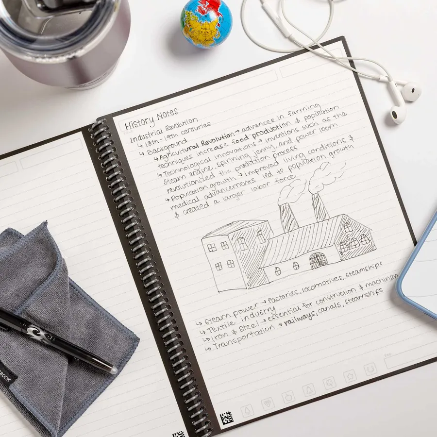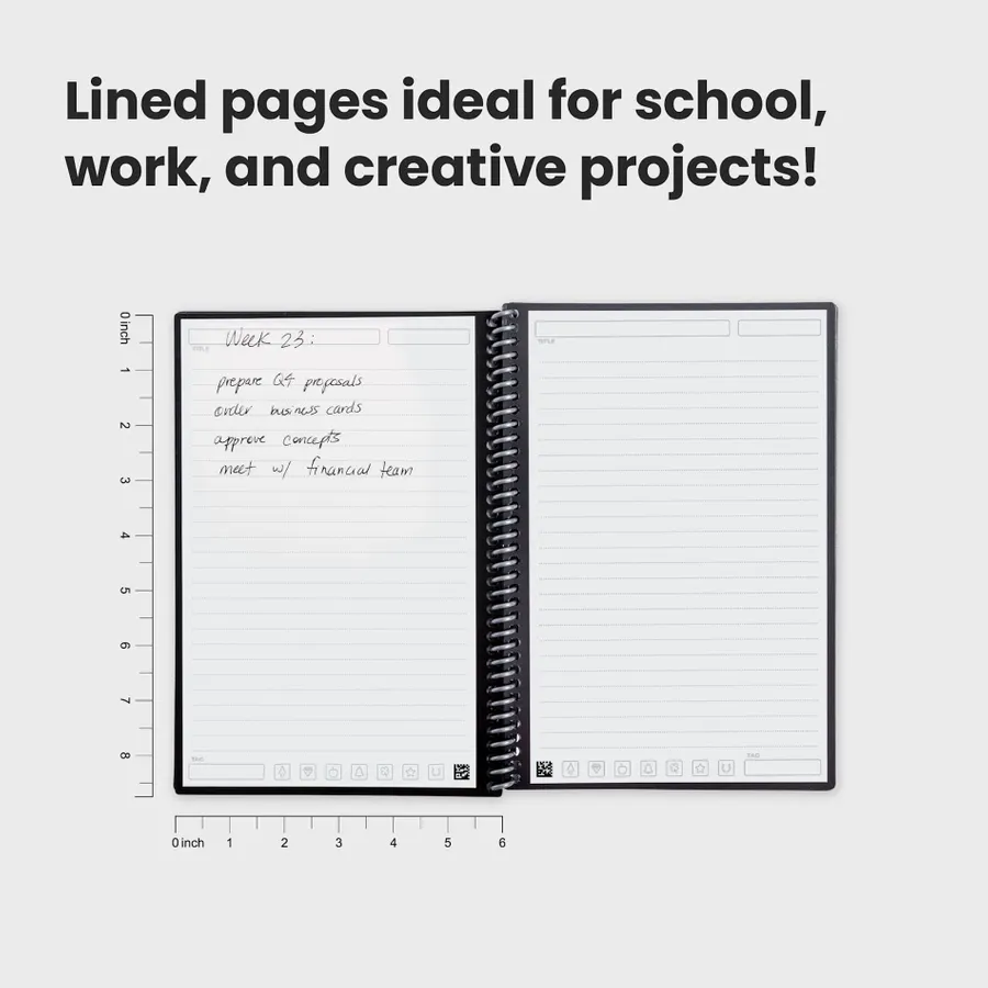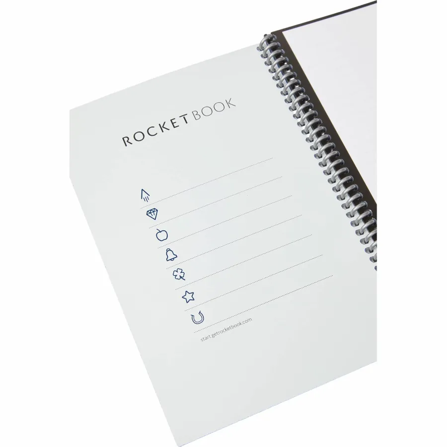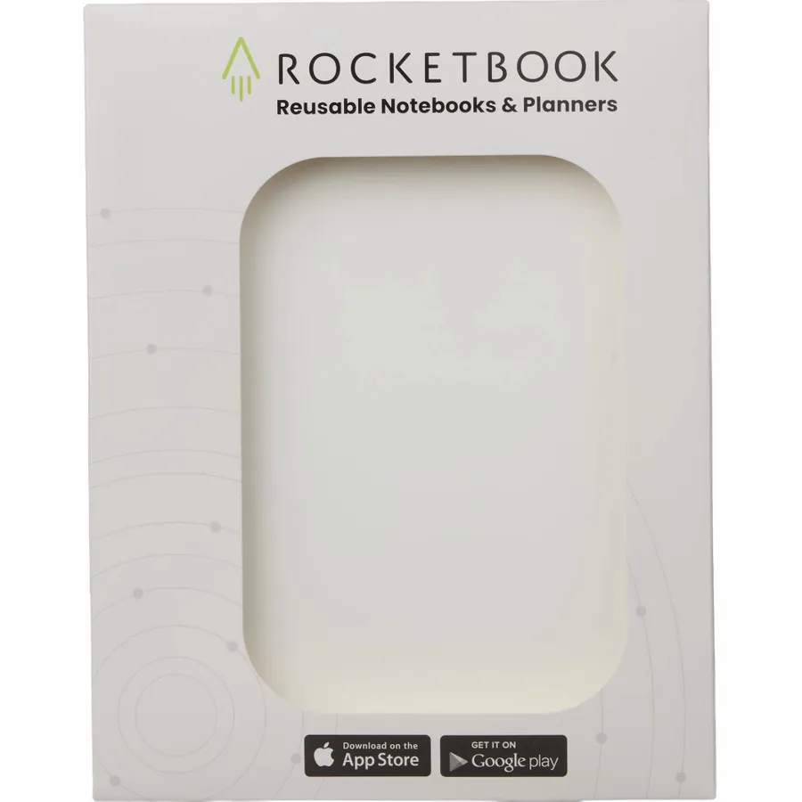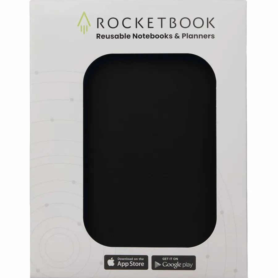 The Rocketbook Core Executive Notebook Set is designed for every classroom, office, and personal mission. This set features a premium notebook with 36, lined reusable pages made to connect to your favorite cloud services. The Core is made with patented reusable Core technology. The synthetic paper allows you to write smoothly with a Pilot FriXion pen, then magically wipe clean with a damp cloth to reuse again and again! Scan and upload your written work directly to cloud platforms like Google Drive, Dropbox, OneNote, etc. and access your notes from anywhere. Use Smart Titles and Smart Tags to name and organize files efficiently.Then, erase and reuse your Core for your next adventure! This set includes Rocketbook Core Notebook, Pilot Frixion Erasable Pen, microfiber wipeable cloth, instruction manual and retail gift box.