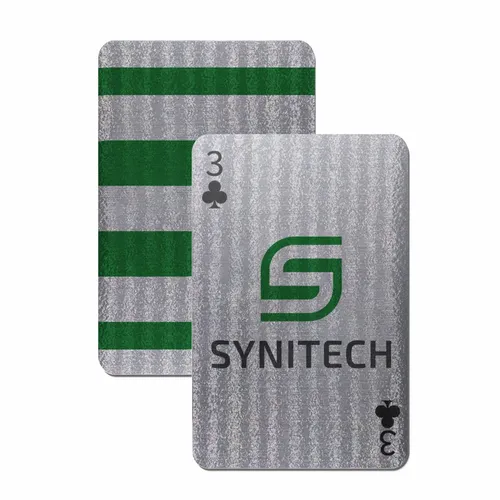Cool, modern, and striking. These brushed silver playing cards bring a contemporary edge to classic gameplay. Durable and eye-catching, they’re equally at home on a gaming table or as a standout promotional gift.