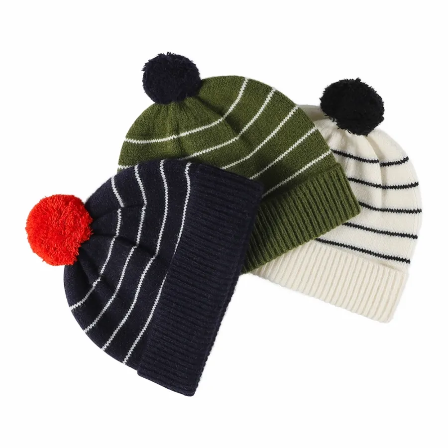 - Stripe Pom Beanie