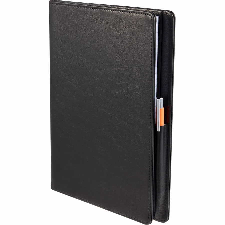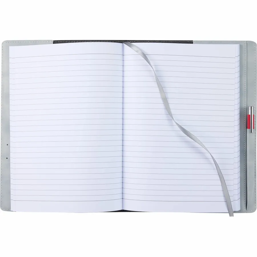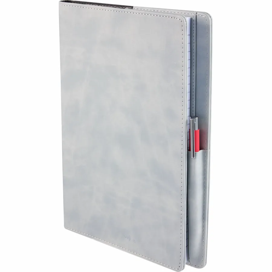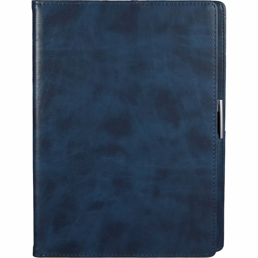 The 7 x 10 FSC Recycled Morano Refillable Journal combines style and sustainability, featuring a marbled cover crafted from 30% recycled post-consumer polyester and 70% polyurethane. This refillable journal includes an FSC recycled insert with 224 pages, making it a versatile choice for long-term use. Designed for convenience, it features two business card slots, two ribbon page markers, and a pen holder, keeping your essentials organized. Pen is not included. The JournalBooks logo is embossed on the back cover as a subtle detail. By choosing this notebook, you’re making a positive impact on the environment through a partnership with 1% For The Planet, as a portion of each sale supports environmental nonprofits.