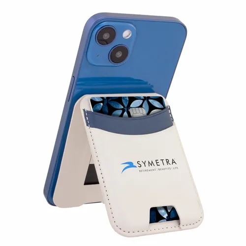 Magnetically connect to a phone and keep cards close and quickly accessible when busy business teams are on the go. With two card slots, there's more to store. Plus, it is designed to open up to provide a convenient way to prop up a phone on desktops or any countertop.