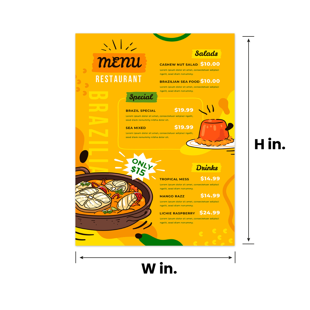 Present Your Offerings in Style with Custom Menu Cards Make a lasting impression with beautifully printed menu cards that elevate your brand and enhance the dining experience. Whether you're designing for a restaurant, café, event, or pop-up, these cards offer a wide range of sizes, finishes, and materials to suit your aesthetic. Add your logo, dish descriptions, or promotional highlights and choose from foil stamping, embossing, or full-colour printing to match your brand’s personality. With flexible sizing and premium paper options, these menu cards are as functional as they are eye-catching.