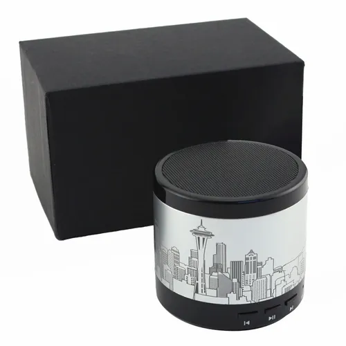 The CityScape Lite wireless wireless speakerphone turns any phone, tablet or mobile device into a portable sound system. Features high definition sound with a built in mic for easy hands-free calling. Stock City Options: Chicago Las Vegas Los Angeles New York San Francisco Seattle St.Louis