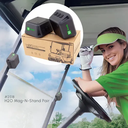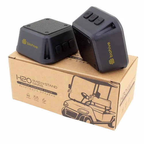 This portable speaker pair features TWS functionality. Synced two units, it creates unparalleled surround sound. Comes with a built-in super-strong magnet, making it easy to attach to golf carts and any metal surface. With its compact size, IPX4 water-resistant design, and powerful sound, it's the perfect choice for golfing and other outdoor activities.