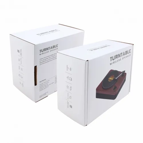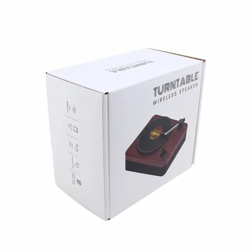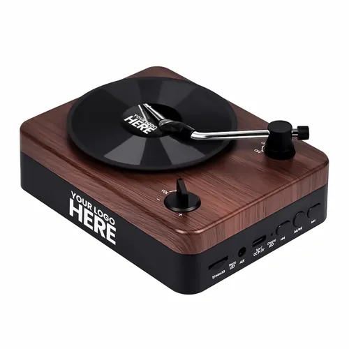 The wireless Turntable Speaker adopts a classic retro design, combined with perfect sound quality to bring you an excellent audio experience. The Turntable Speaker is packaged in a gift box and can be decorated with a custom decal on the faux vinyl record and your logo printed in full colour on the side of the Turntable Speaker.